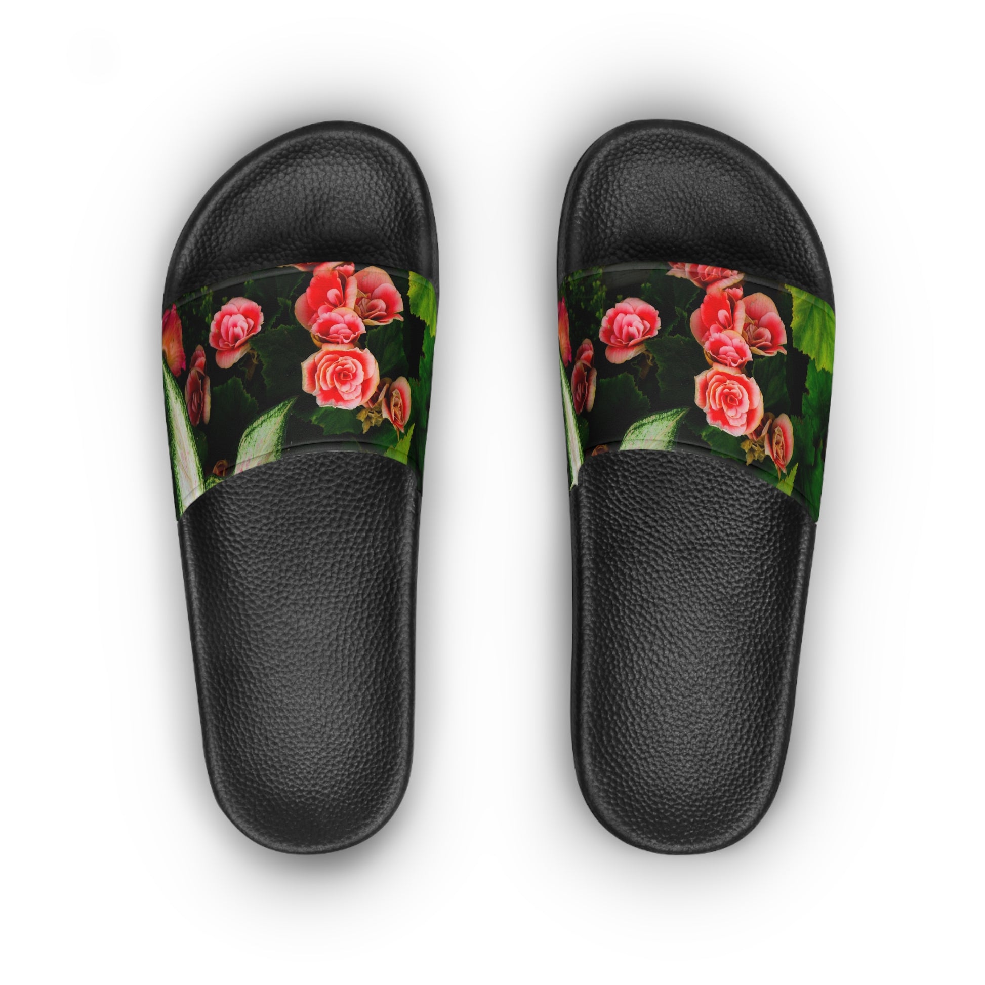 These Rose Floral Slide Sandals feature a black sole and a beautiful floral garden design, giving off a fresh and feminine vibe. Perfect for women who love stylish and comfortable footwear, these sandals are ideal for casual outings, beach days, or relaxing at home. Great for summer holidays, beach trips, or everyday wear.