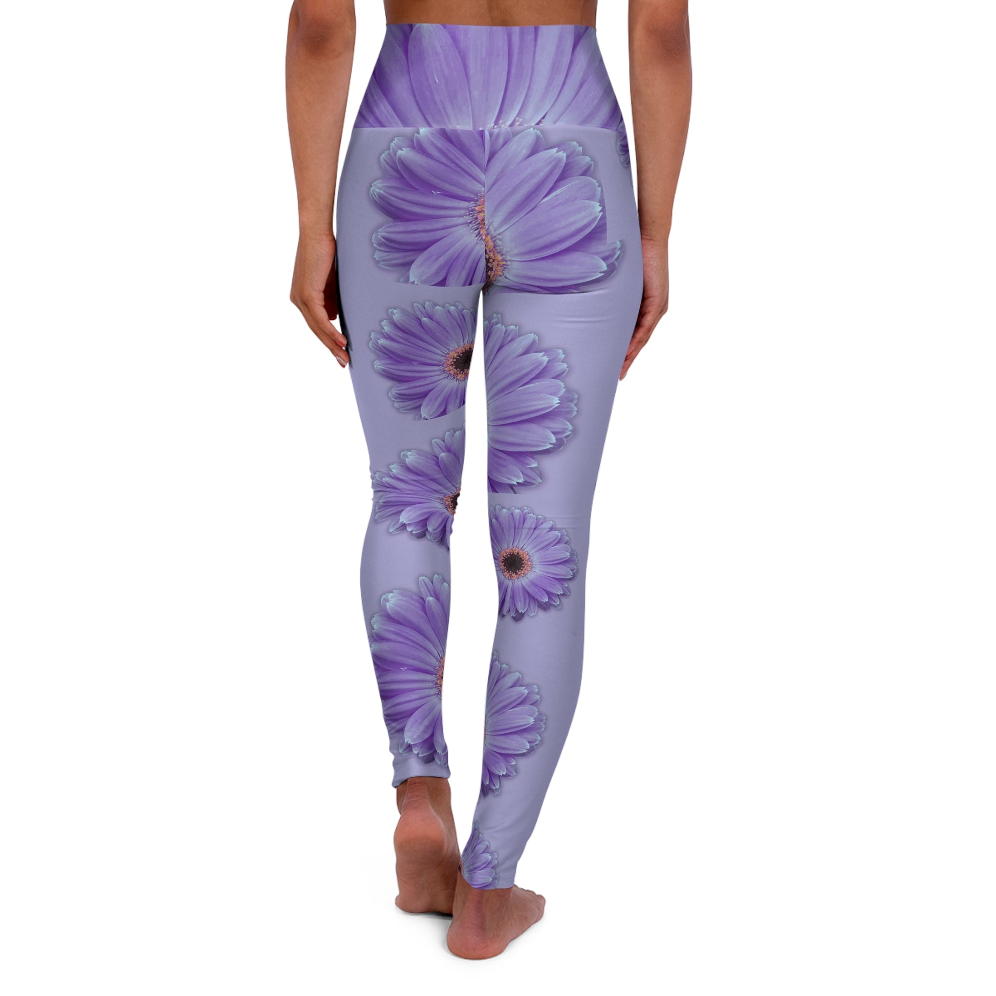 These Gerber Daisy Women's High Waisted Yoga Leggings in lilac with a floral design are perfect for yoga lovers and those who appreciate a touch of nature in their activewear. The high-rise waist and 4-way stretch fabric provide both style and comfort, making them ideal for yoga sessions or casual wear. Namaste in style with these vibrant and durable leggings. This one of a kind design was created from a moment on Martha's Vineyard, MA.