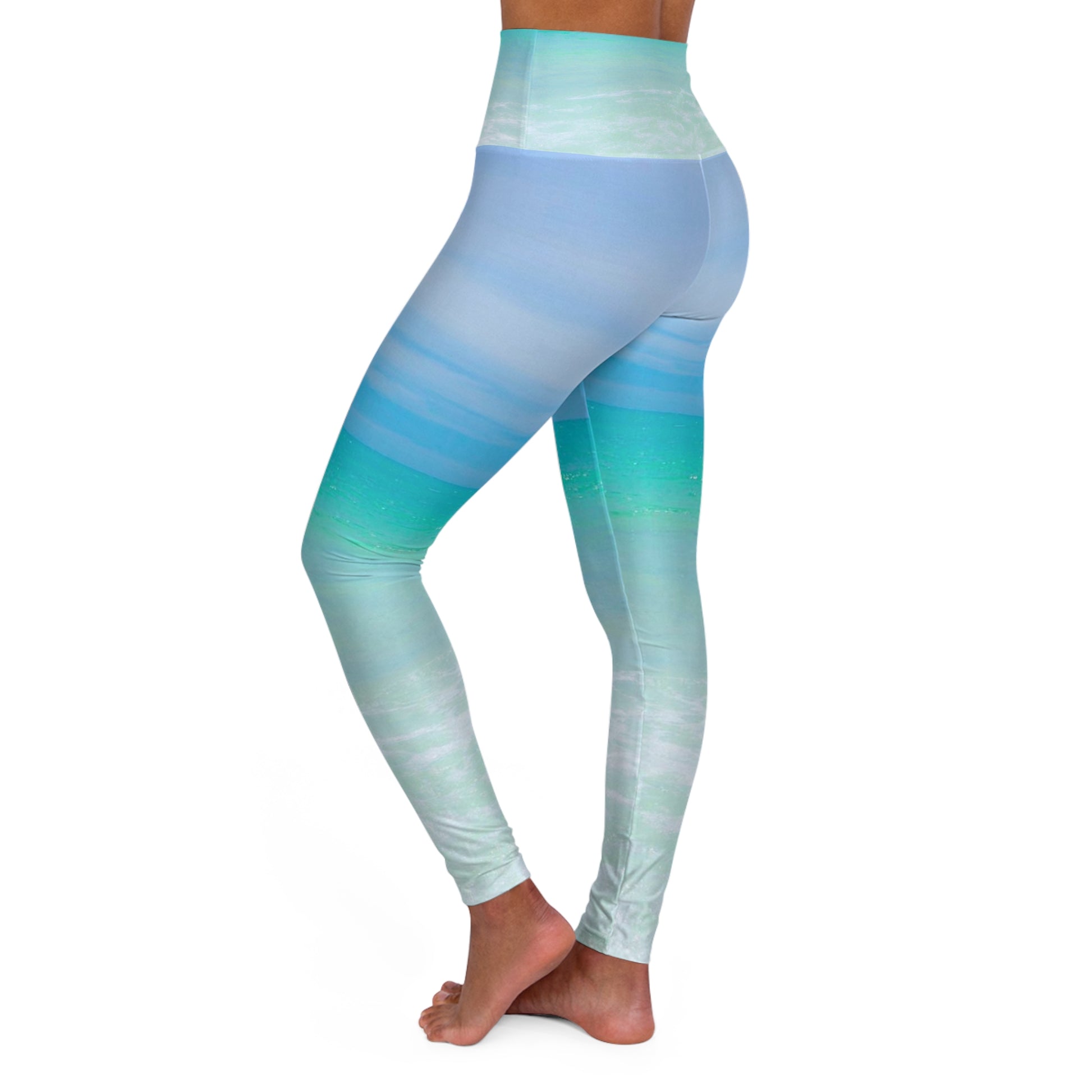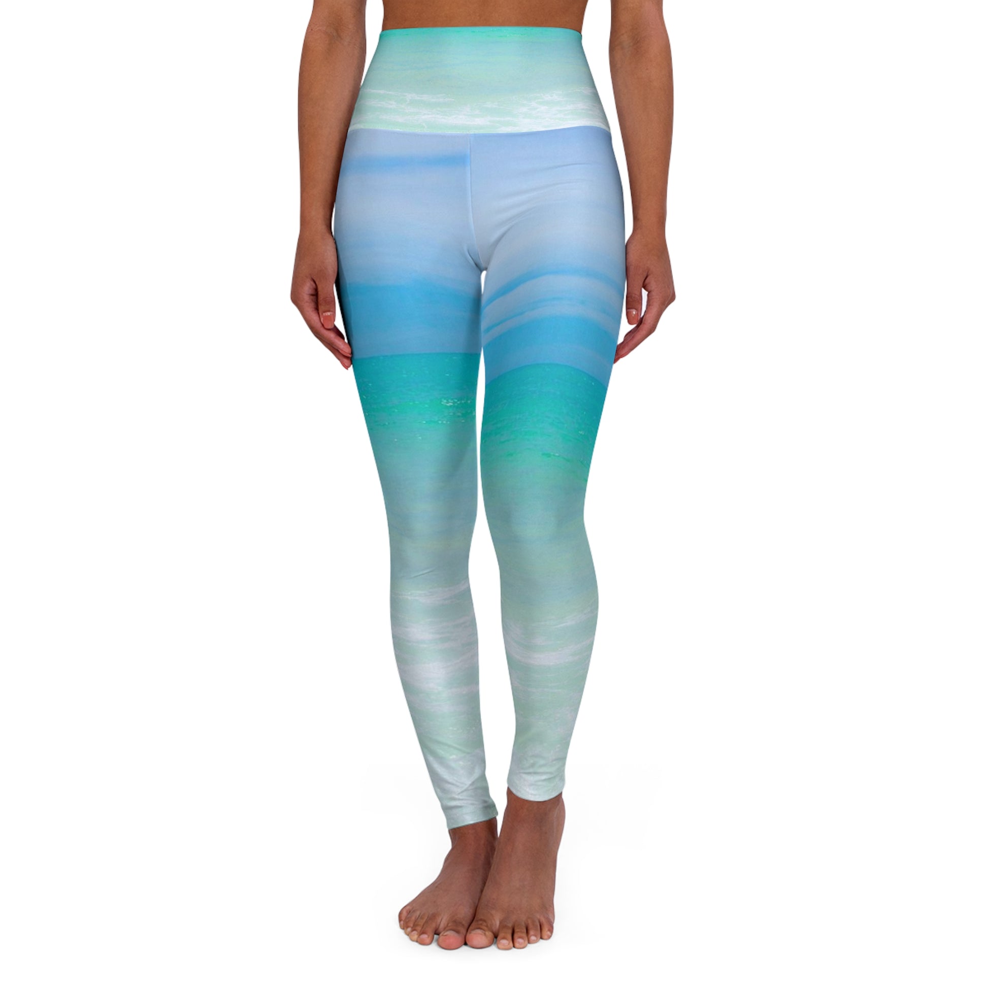 Ocean Blue High Waisted Skinny Fit Yoga Leggings, Women's Athletic Pants. These leggings provide vibrant color and extra freedom of movement, making them perfect for yoga or any athletic activity. Relevant for fitness enthusiasts, yoga lovers, and those looking for comfortable activewear. Great for holidays like International Yoga Day or Fitness Awareness Month.