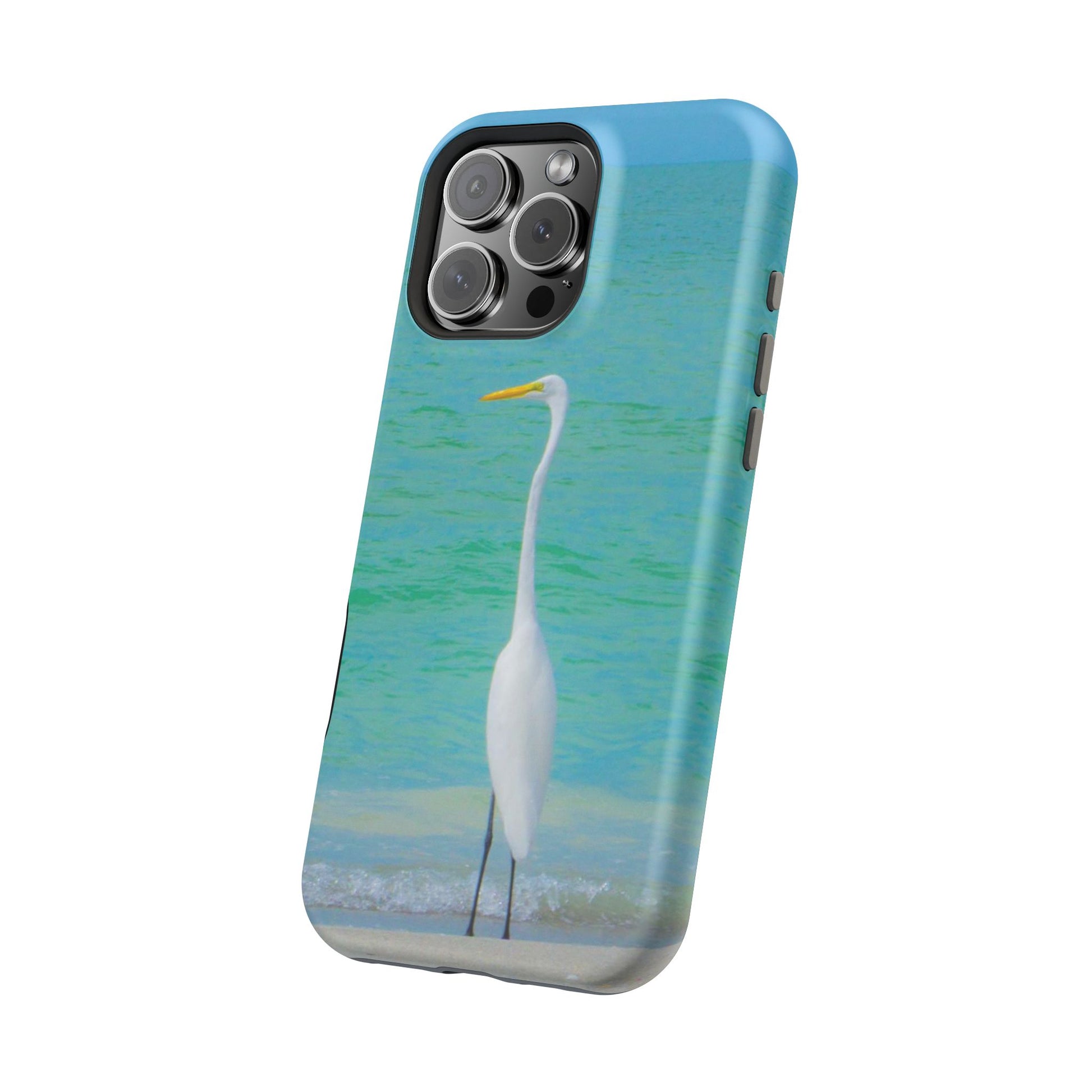 Snow Bird Crane MagSafe Tough iPhone Case| Durable and Flexible Impact-Resistant MagSafe Case| Great Egret| Longboat Key| Electronic Accessories