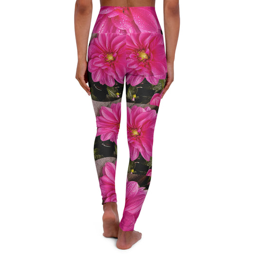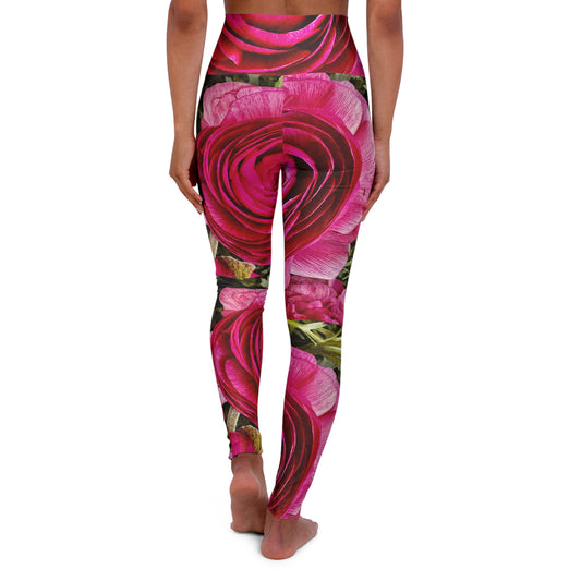 High Waisted Floral Yoga Leggings, Pint Floral Tight Yoga